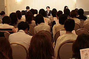 「自分の預貯金を投資に回している人、会場にどこくらいいらっしゃいますか?」藤野さんが問い掛けると、約7割の参加者が挙手。参加者の投資に対する意欲、熱意が伝わってきます。「自分の得意分野や身近なものから投資を始めるのがいいと思います。消費者の実感を投資に結びつけるのがいいですね。それから投資は早めにスタートして、でも焦らずに最初は小さい額で始めるのがいいですよ」これまで4,000名を越す経営者との面談を通じて日本の新興企業・中小型株市場に対する造詣が深い藤野さんからのアドバイスに、参加者は真剣に耳を傾けていました。熱心な参加者のために、藤野さんは投資のための4つのキーワードをくださいました。これは、会場に来られた参加者だけの秘密ということにしておきましょう。 |