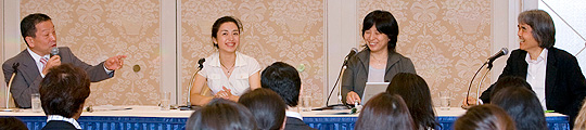 この文科会では、講師としてジャパンエリアマネジメント代表取締役の西本千尋さん、ワイズスタッフ代表取締役の田澤由利さん、飛騨産業社長の岡田贊三さん、ファシリテーターとして、元ニューズウィーク誌編集主幹で、現フリージャーナリストの藤田正美さんを迎えました。