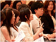 毎年ヒット商品のランキングをする「日経トレンディ」。渡辺敦美編集長は、いわばヒット商品を評価するプロでもあります。最近とバブル崩壊直後の時代のヒット商品を比較・説明しながら、その特徴を鋭く分析。「いかに周囲を巻き込んでいくか?」「こんな時代にどんな発想が必要か?」などスピーカーの意見や開発秘話を引き出します。「ヒット商品とは、どんな時代であれ常に常識破りである」「キーワードは“愛してる”こと」など、わかりやすく印象的なコメントで盛り上がったセッションをしめくくってくれました。