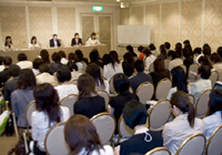 井出留美氏は、「栄養学の分野では、博士課程に進む人が少なく、自分の専門性をさらに磨きたかった」。戸谷圭子氏は、「大学院に通いながら、大学で教えていました。銀行で働いて、さらにサービスマーケティングを学びたかったから」。江端貴子氏は、「自分がつくっている銀行のシステムが、社会でどのように生かされているのかを学びたかった」。金野志保氏は、「キャリアをさらに磨きたかった。キャリアにかけた分、自分にかえってきますから」。吉武博通氏は、「永年、鉄鋼マンでしたが、会社を辞めて、大学で働くようになり、さまざまな出会いや発見があるから」。理由は様々ですが、みなさん、何を学びにいくか、目的をしっかり持つことが重要だと話されました。