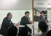 山田さんは「ティアナ」のデザイン開発の外部アドバイザーとして、新車開発にもかかわられたようで、コンセプトの一つが「Japanese Modern」であることを意識されてのことなのか、優雅な和服姿で登場なさいました。ビジネススーツ姿の男性が多い中で、ショートヘアに縞の着物をキリッと着こなした姿は注目を集めていました。