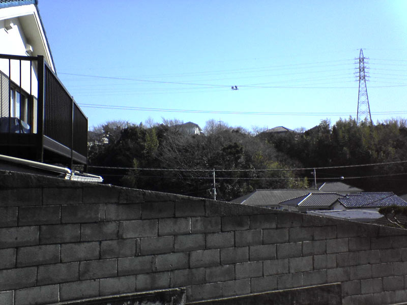 高圧電線を保守する作業員。なかなか普段は見られない光景なので写真に収めました。こうして保守しているから家庭に電気が送られているのですね。