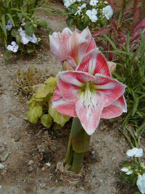 「浜名湖花博」会場にて。この茎が短くて花が異様に大きなものは、看板によれば「アマリリス」です。本当でしょうか。常識を覆された感じです(笑)