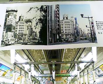 東京八十八景、第三景。地下鉄車内の広告のある風景。地下鉄は私たちの重要な交通手段。何気無く目をやる広告はいつも私たちを楽しませてくれる。これは夕方の車内。朝は満員電車で写真は撮ることはできない。