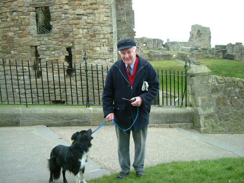 ゴルフ場、ウィリアム王子の通う大学で知られているScotland St.Andrewsの町のお城を背に、お散歩をしていたワンちゃんとおじいさんの写真を撮らせてもらいました。今はオフシーズンということもあり、とても時間がゆったりと流れています。