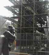 もうすぐ博多山笠が始まります。博多駅前にできる飾り山(飾りみこし)の工事現場を博多人形の銅像越しに撮影しました。7月1日からの15日間博多の街が熱くなります。梅雨に入ってからは雨の日が少ない福岡はすっかり夏です。