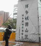 飾り山笠がこの中でもうすぐお披露目です。連日の猛暑の後に梅雨らしい雨がやっと降っています